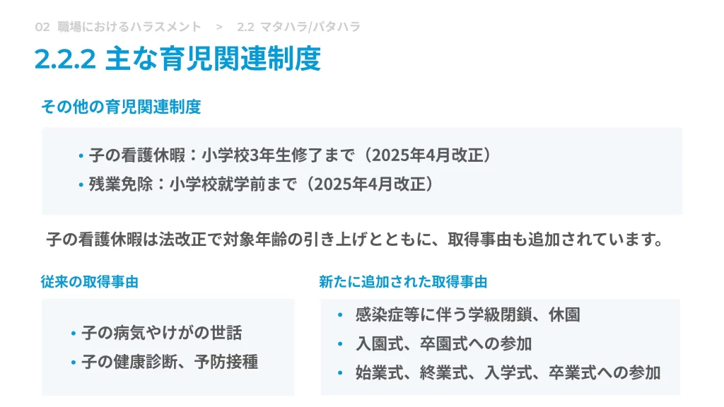 2-2. マタハラ/パタハラ(マタニティ・パタニティハラスメント) | - 妊娠・出産・育児に関するハラスメントの具体例 - 企業の対応義務と社内制度 |