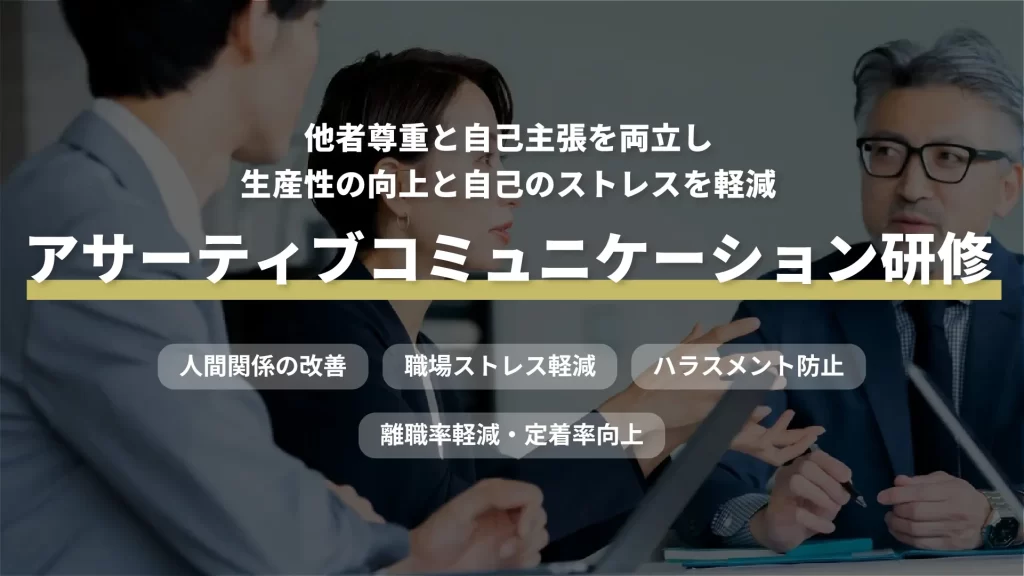 メンバーや他社の意見を尊重しつつ、自己・自社の意見を主張するアサーティブコミュニケーションスキルを習得し、生産性を向上し職場ストレスを軽減します。