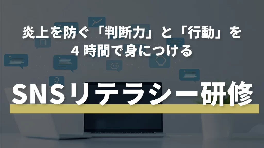 SNSに潜むリスクを社員一人ひとりが自分ごととして捉え、炎上を未然に防ぐ「判断力」と具体的な「行動」を実践的に身につけるプログラムです。